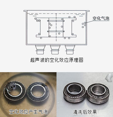 由超聲波發(fā)生器所發(fā)生的高頻振蕩訊號,通過換能器轉換成高頻機械振動而傳播到介質中,超聲波在清洗液中疏密相問地向前輻射,當聲波的壓強達到一定的大氣壓時,產生數以萬計的微小氣泡,這些氣泡在超聲波縱向傳播的負壓區形成、生長,而在正壓區迅速閉合。這種現象稱為超聲"空化效應",產生氣泡時所需的壓力稱為超聲"空化閥值"。